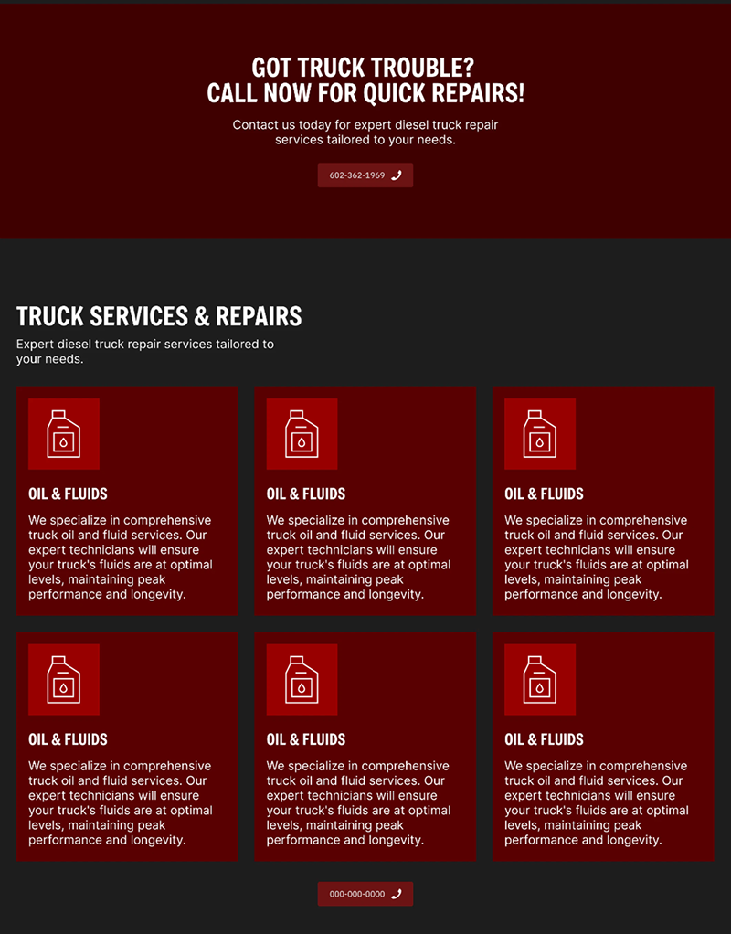 Diesel-specific templates, service-focused content, and built-in SEO